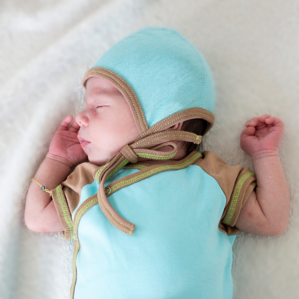 Da Frühchen besonders gefährdet sind und viel schneller auskühlen als Babys, die zum Entbindungstermin das Licht der Welt erblickt haben, kamen wir nicht drum herum, ein Baby Häubchen speziell für Frühchen zu entwickeln. Ein Body oder Strampler darf anfangs ruhig etwas groß ausfallen, aber ein Häubchen muss den kleinen Kopf passgenau umschließen. Denn nur so kann die wärmespeichernde Eigenschaft von Pima Baumwolle ihre optimale Wirkung entfalten.