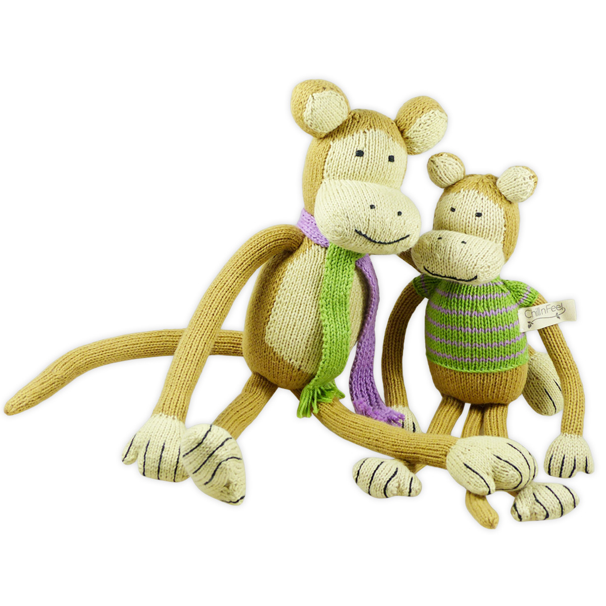 Kein Plastik-Geruch, kein Spielzeug vom Laufband, dieses affenstarke Geschenk für Geschwister ist zu 100% nachhaltig, gesund und pflegeleicht. Es sind Menschen, wie du und ich, die mit der Strickkunst groß geworden sind und davon ihre Familien ernähren. Es sind liebende Mamas, die Affe Gonzalo und Äffchen Theo für Chill n Feel stricken. Mit ganz viel Liebe zum Detail schaffen sie Unikate für den Öko Spielzeug-Markt.