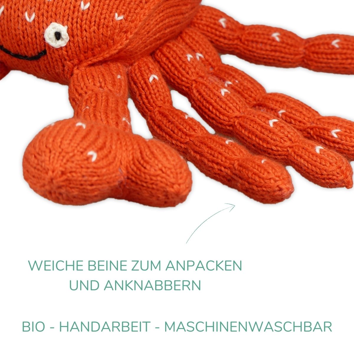 Pablo der Krebs war ein verspätetes Geburtsgeschenk für den Babysohn und ist sein erstes eigenes Kuscheltier :). Er spielt jetzt ständig damit und lutscht ausgiebig an den Krebsbeinen und Scheren. Pablo ist schön groß, hat viele Beine und Scheren, an denen der Kleine ihn greifen kann und das Beste: keine Knöpfe oder sonstiges Zeug das leicht angeht und verschluckt werden kann (die Augen sind aus fest aufgenähten Stoff). Und Pablo ist wunderschön! Auch der große Bruder stibitzt ihn ab und zu. Verständlicherweise. Pablo ist auch mein Lieblingskuscheltier. Super Geburtsgeschenk!
